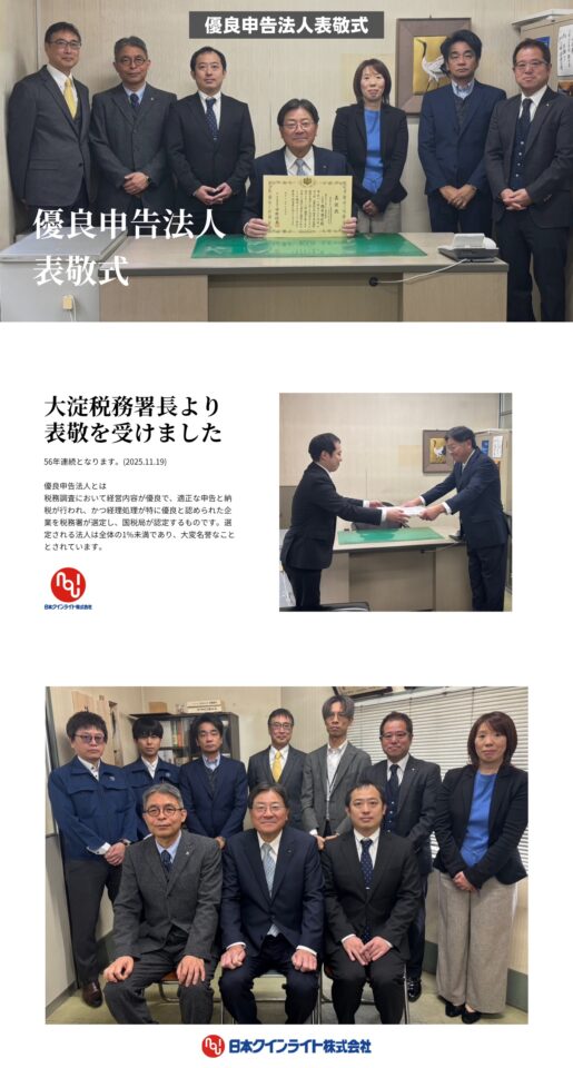 大淀税務署より、優良申告法人の表敬を受ける(56年連続)